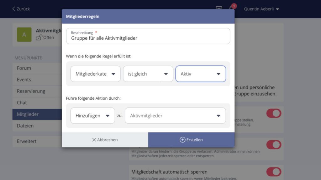 Die Mitgliederregel übernimmt die Routine. Automatisch. Fehlerfrei. Skalierbar – egal ob eine Community 50 oder 5’000 Mitglieder hat.